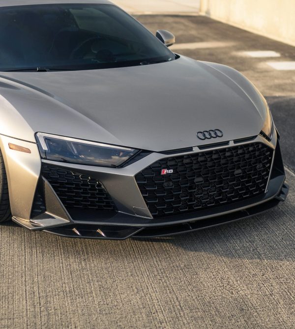 At Automotive Passion, we have engineered a one-piece full dry carbon fibre front splitter specifically for the Audi R8 FL 2019+ model year. Designed to enhance aerodynamic performance and visual aggression, the splitter integrates seamlessly with the vehicle’s OEM styling – achieving a factory fitted appearance. Our objective was to visually lower the front end without altering the car’s ride height, delivering both aesthetic and functional improvements.