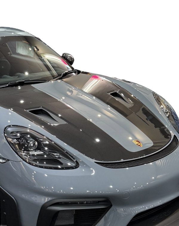 Unleash the full visual and aerodynamic potential of your 981 & 718 GT4 Porsche with our Dry Carbon Fibre Hood.