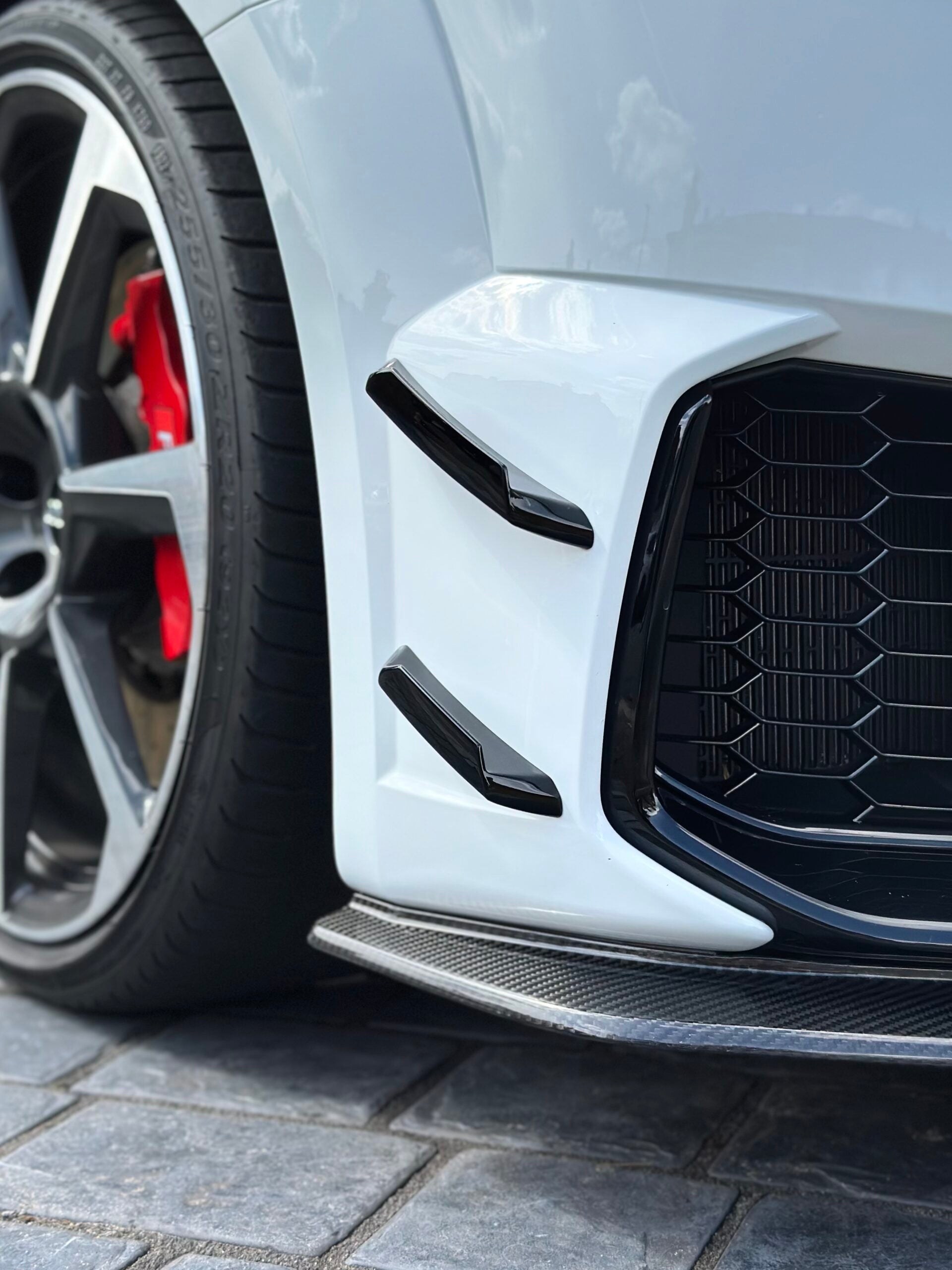 Although these TTRS front canards are compact, they deliver noticeable results. From a styling standpoint, they give your front bumper a layered, motorsport appearance. At speed, they help channel air more efficiently along the sides of the vehicle, which can improve handling response.